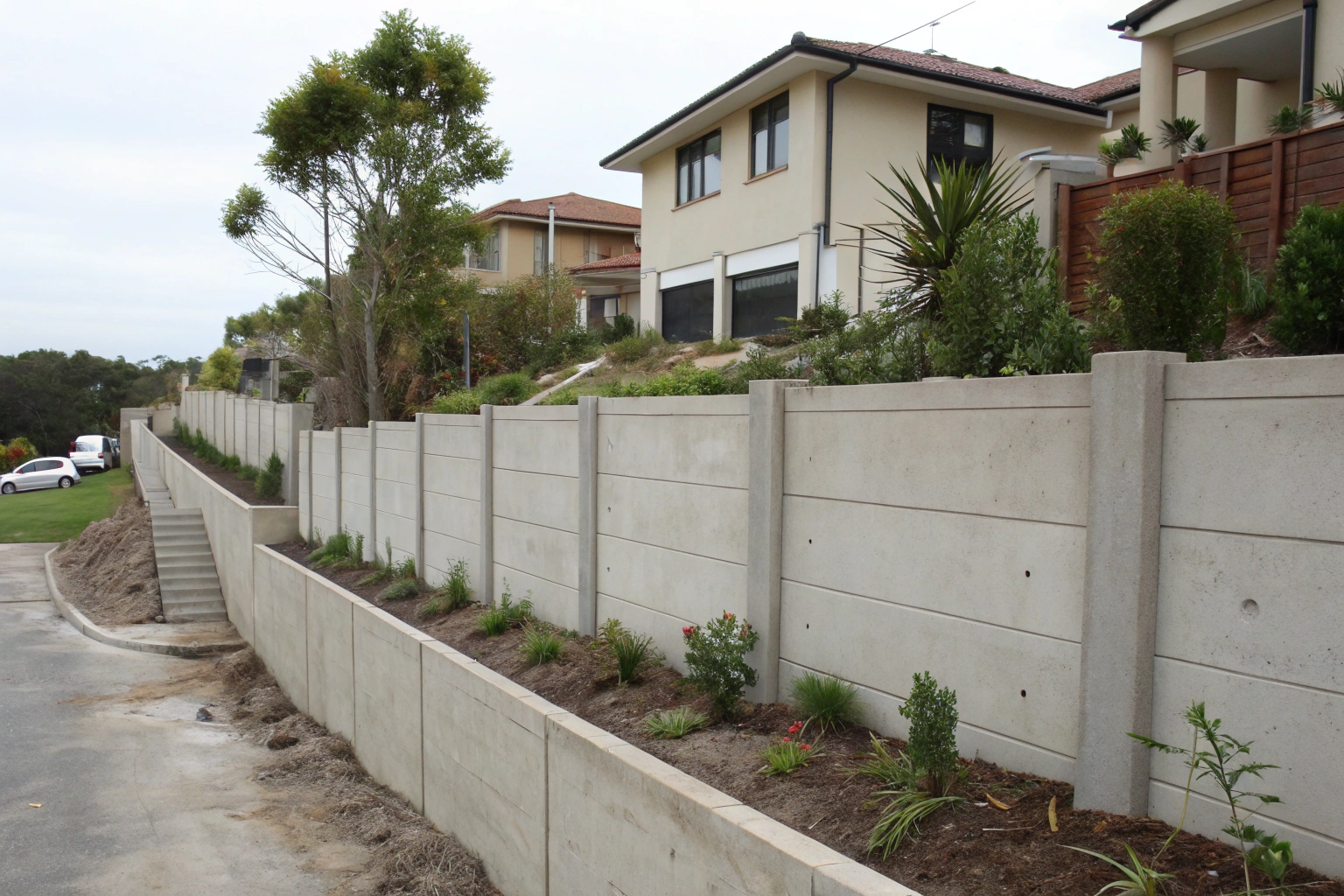 - Boundary and property separation walls — retaining differential ground levels between neighbouring properties where one lot sits higher than the adjacent title